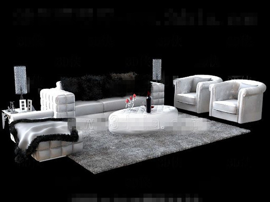 KeyWords:White,fur,sofa,tea table