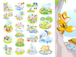 Description:Environmental elements of collage images of animals vector material -1