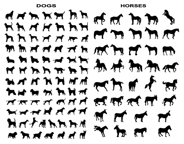 A variety of horse and dog silhouettes vector material movem