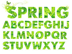 Green Spring English letters Vector material