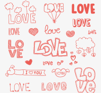 Of 16 red love WordArt vector material